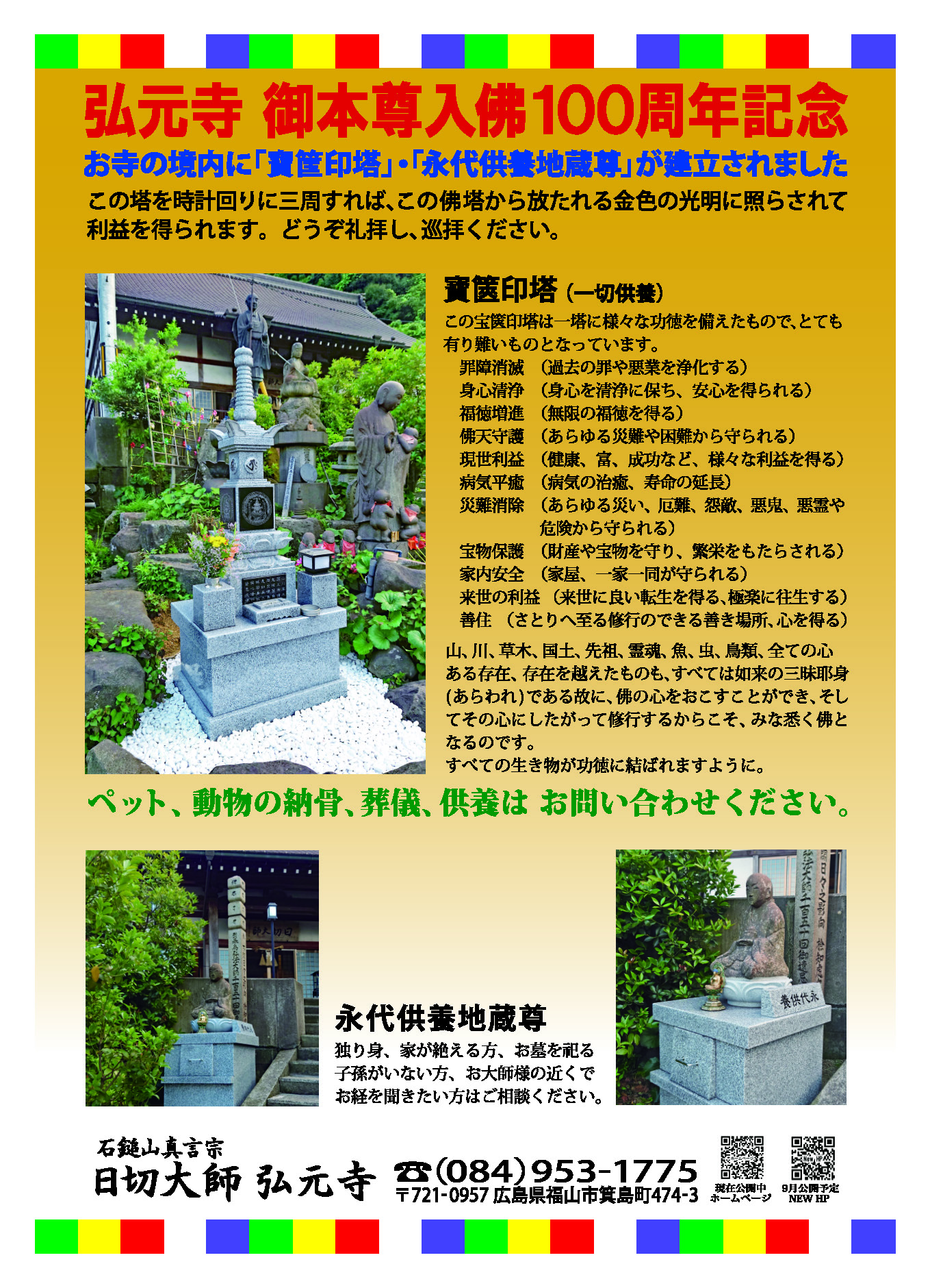 この度弘元寺の秘佛「弘法大師」様が京都の仁和寺より修復ご勧請され百年を迎えました。